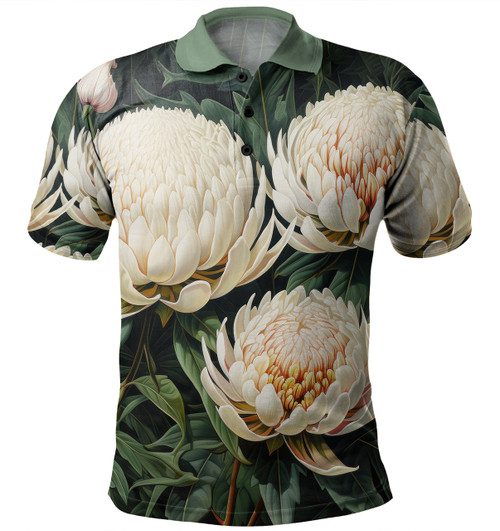 Australia Waratah Polo Shirt – White Waratah Flowers Fine Art Ver2 Polo Shirt