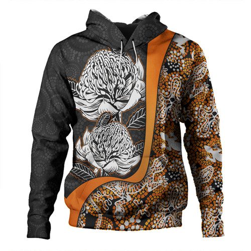 Australia Warratah Goanna Aboriginal Hoodie – Waratah Flowers With Orange Lizards, Stones, Sand Dot Art Painting Inspired Hoodie