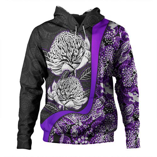 Australia Warratah Goanna Aboriginal Hoodie – Waratah Flowers With Purple Lizards, Stones, Sand Dot Art Painting Inspired Hoodie