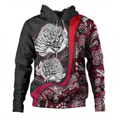 Australia Warratah Goanna Aboriginal Hoodie – Waratah Flowers With Red Lizards, Stones, Sand Dot Art Painting Inspired Hoodie