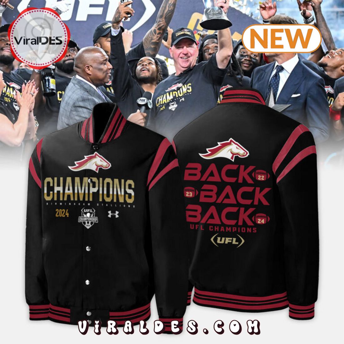 Birmingham Stallions Champions 2024 Black Baseball Jacket