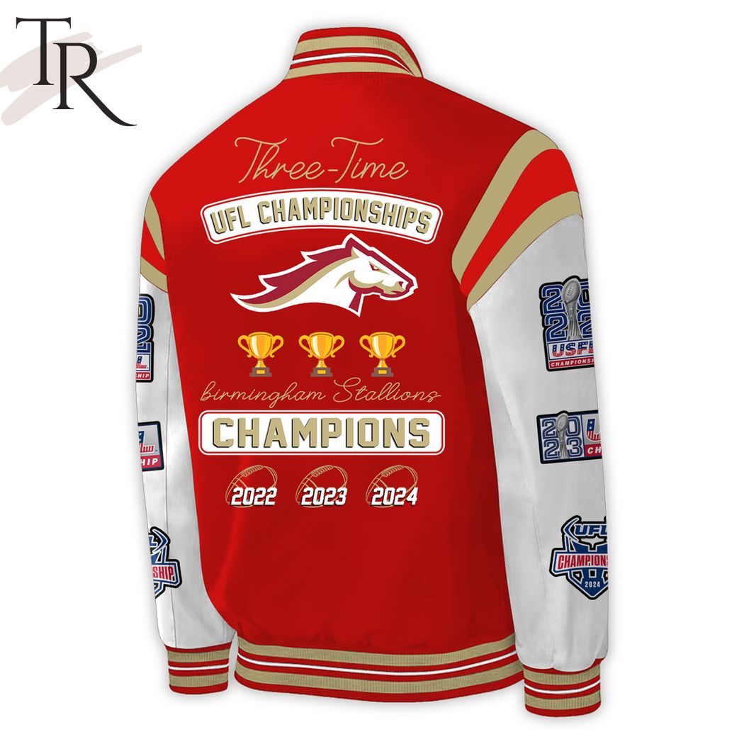 Order your Birmingham Stallions Three-Time UFL Championships Baseball Jacket today and show your pride for the team!