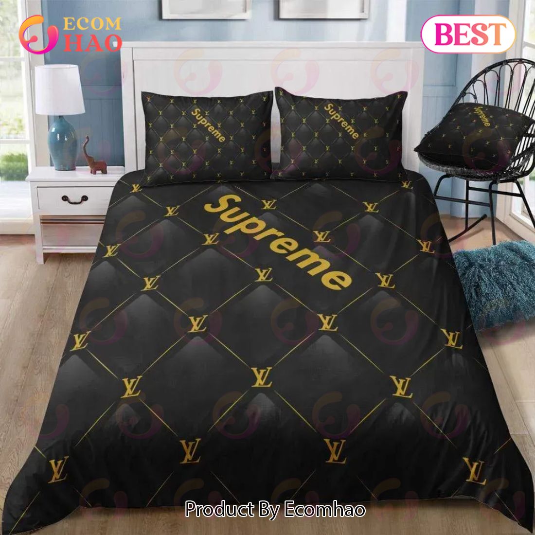 Black Louis Vuitton Supreme Logo Luxury Brand High End Premium Bedding Set For Bedroom Luxury Bedspread Duvet Cover Set With Pillowcases Home Decoration This Black Louis Vuitton Supreme Logo Luxury Brand High End Premium Bedding Set is an ideal choice to set your bedroom apart from the rest. The set includes one duvet cover and...