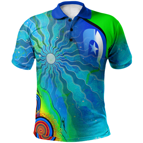 (Blue Collar) Australia Polo Shirt – Torres Strait Islanders Flag with Torres Strait Islands Inspired Patterns Shirt