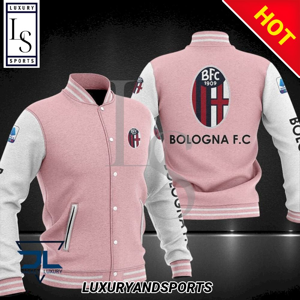 This Bologna FC Baseball Jacket is crafted from durable materials and features a full-snap closure.