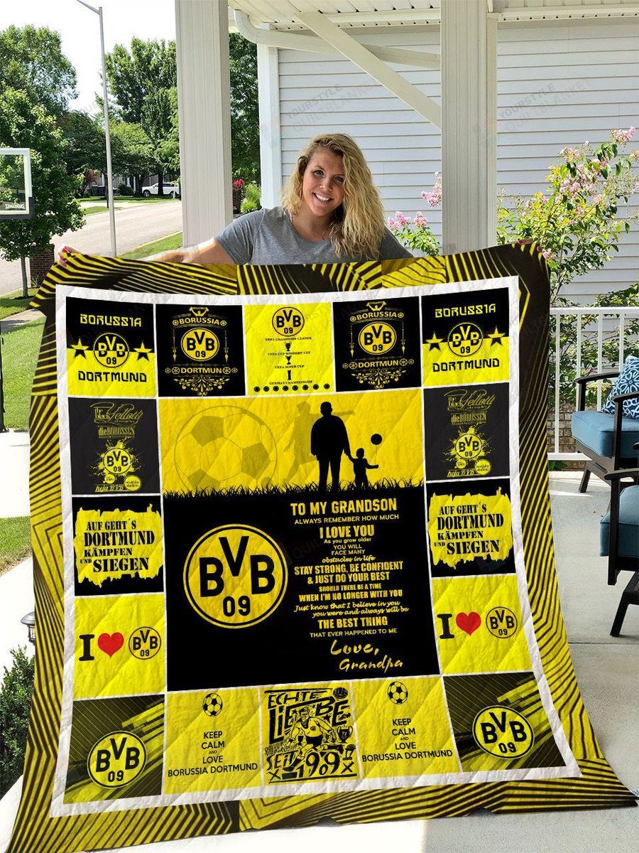 Borussia Dortmund Black Yellow To My Grandson Love Grandpa Quilt Blanket