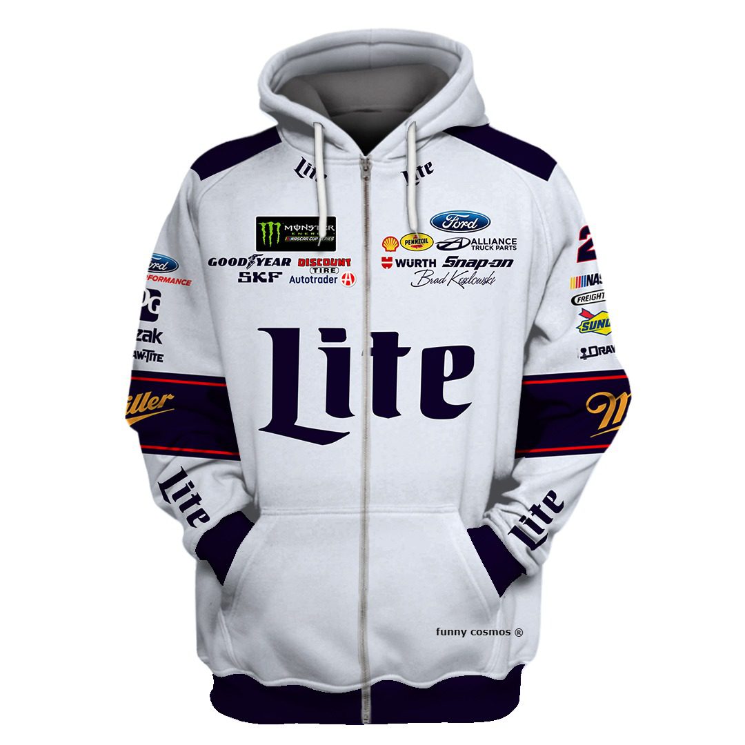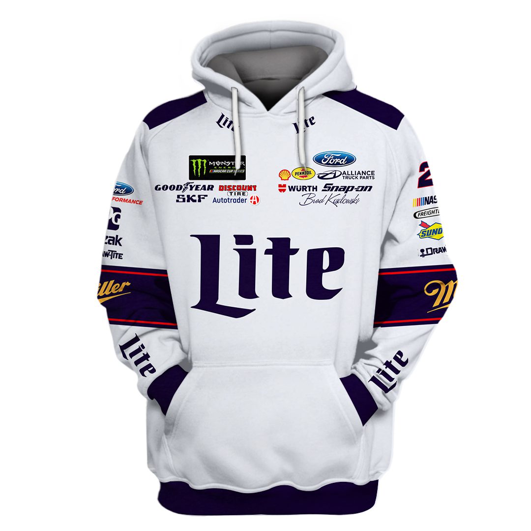 Buy Brad Keselowski Hoodie Penske Nascar Sweater Miller Lite, Penske Team, Brad Keselowski, Nascar Cup, Snap On, Monster Energy, Skf, Wurth Racing Uniform and