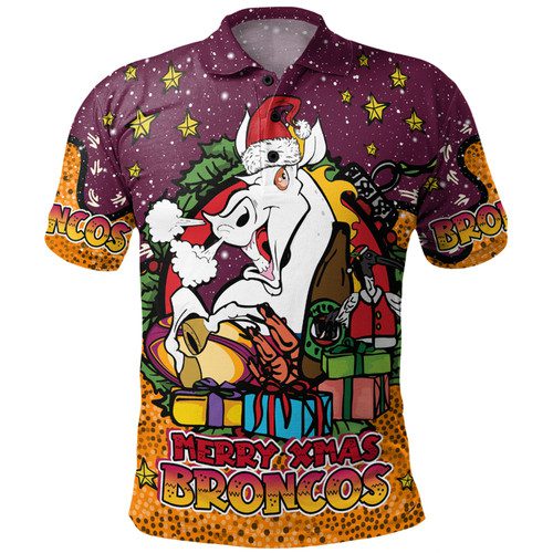 Brisbane Broncos Christmas Custom Polo Shirt – Merry Christmas Our Beloved Team With Aboriginal Dot Art Pattern Polo Shirt
