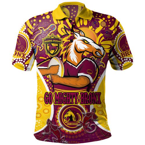 Brisbane Broncos Custom Polo Shirt – Go Mighty Broncos Indigenous Art Personalised Player Name And Number Polo Shirt