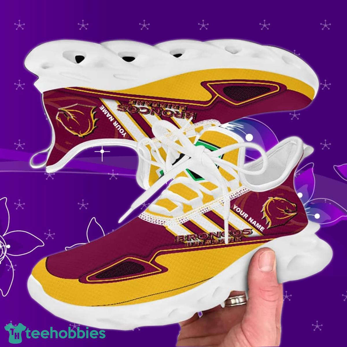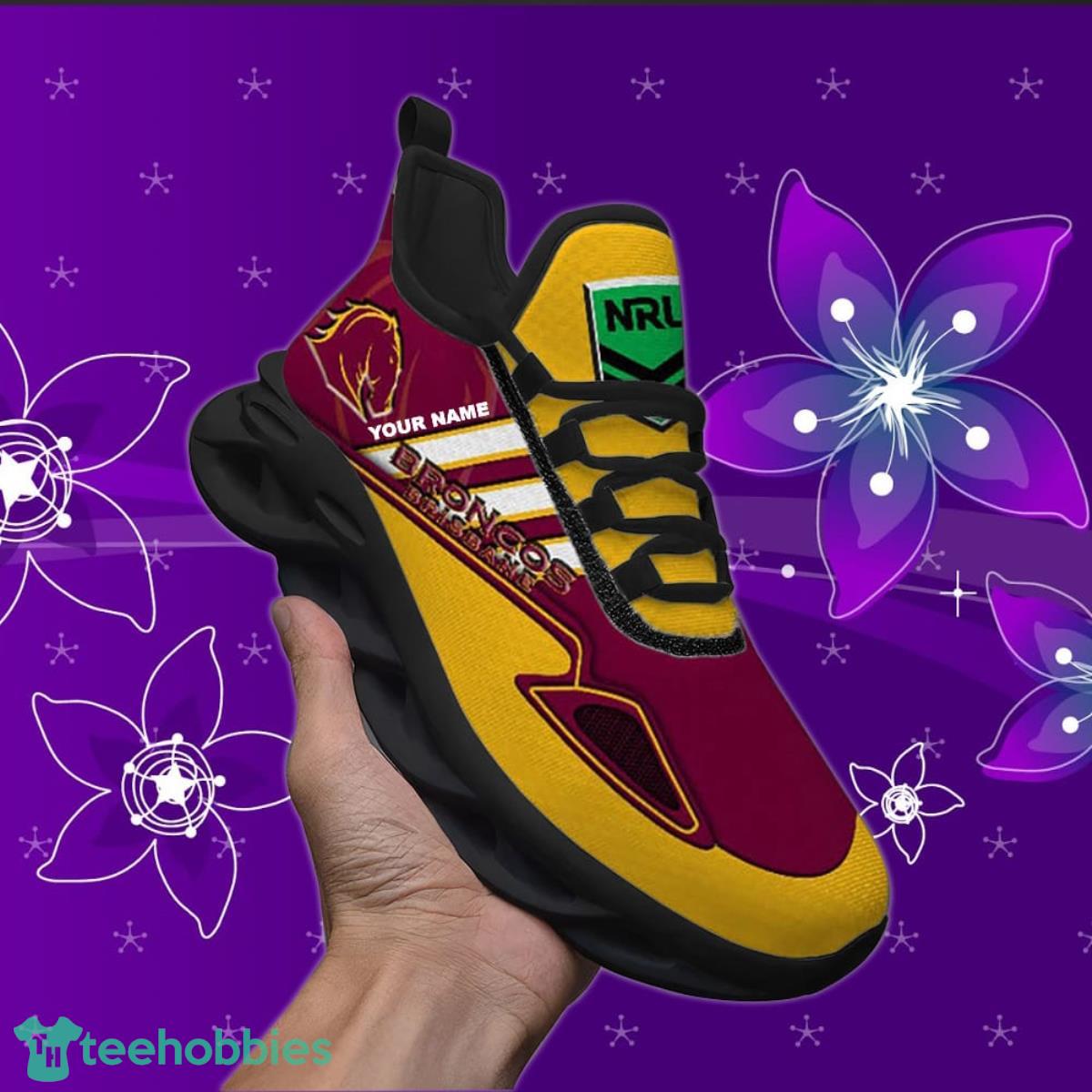 This Brisbane Broncos NRL Max Soul Custom Name Style Gift Men And Women For Fans is a breathable, lightweight, and comfortable casual outdoor shoe that has a unique design. It is made of a mesh fabric which makes it sweat absorbent and breathable, while the rubber bottom ensures traction, comfort, and durability. It is available in two colors: black or white sole. There are two styles of shoelace holes so you can choose your preference.