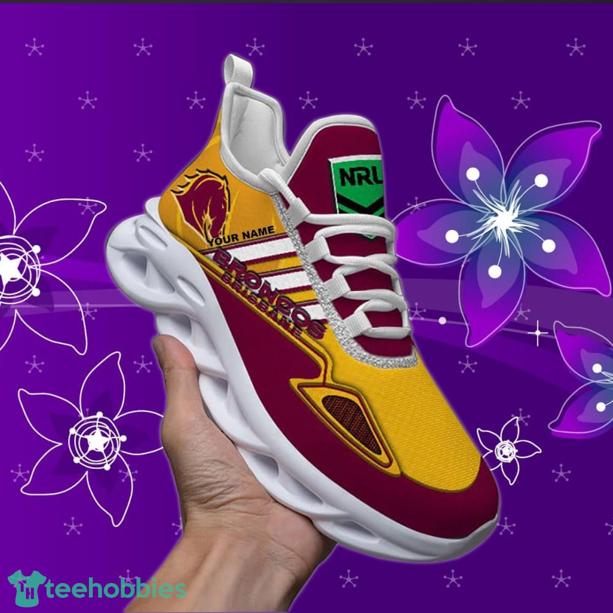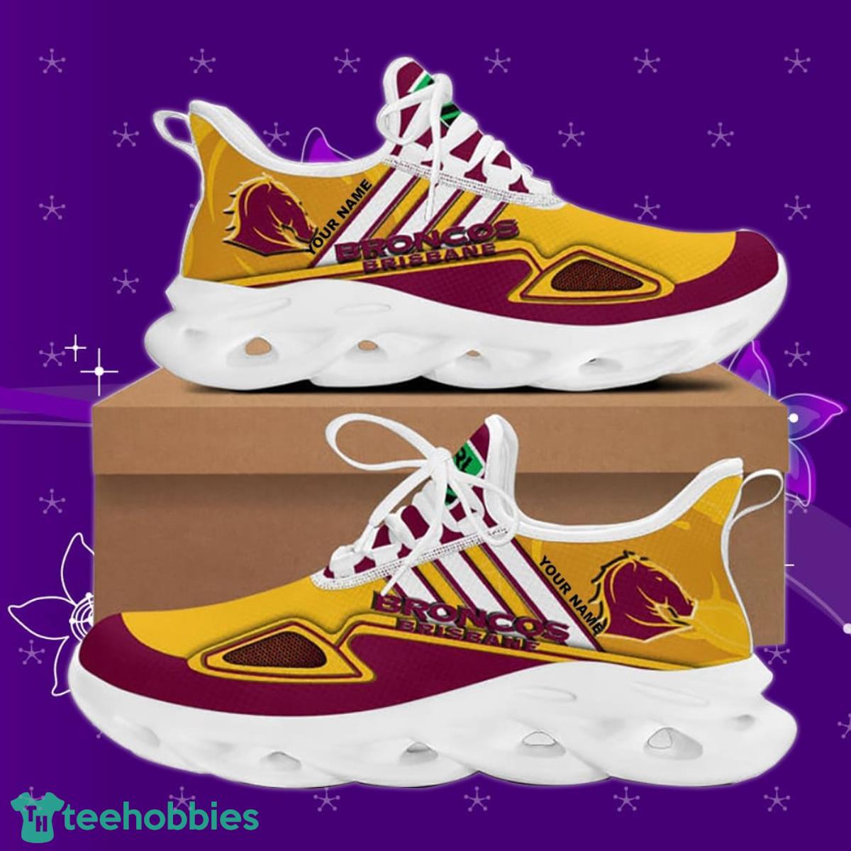 This Brisbane Broncos NRL Max Soul Custom Name Unique Gift Men And Women For Fans is a breathable, lightweight, and comfortable casual outdoor shoe that has a unique design. It is made of a mesh fabric which makes it sweat absorbent and breathable, while the rubber bottom ensures traction, comfort, and durability. It is available in two colors: black or white sole. There are two styles of shoelace holes so you can choose your preference.