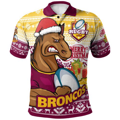 Brisbane Broncos Polo Shirt – Custom Brisbane Broncos Mascot Knitted Christmas Patterns Polo Shirt