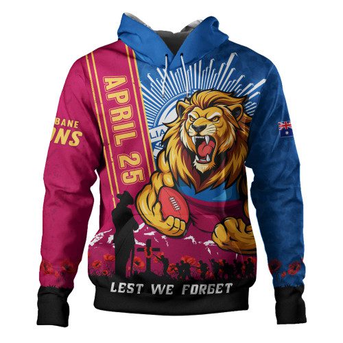 Brisbane Lions Hoodie Anzac Day Lest We Forget Memorial