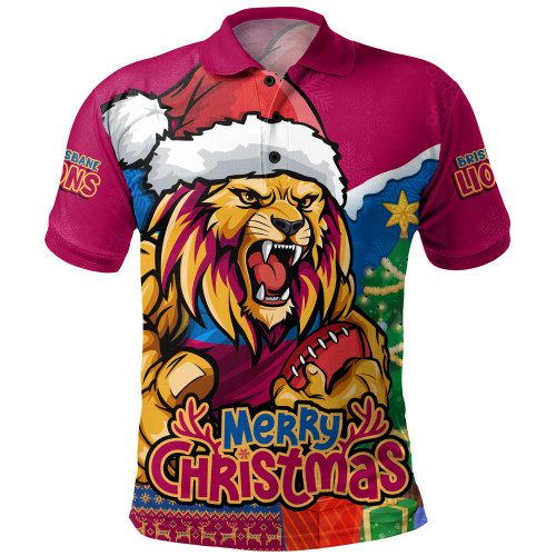 Brisbane Lions Polo Shirt Santa Scoring Touchdown On Christmas Game Day