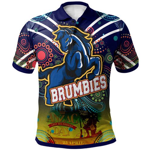 Brumbies Rugby Polo Shirt- Anzac Day “Lest We Forget” Brumbies Aboriginal Inspired Pattern With Horse Polo Shirt