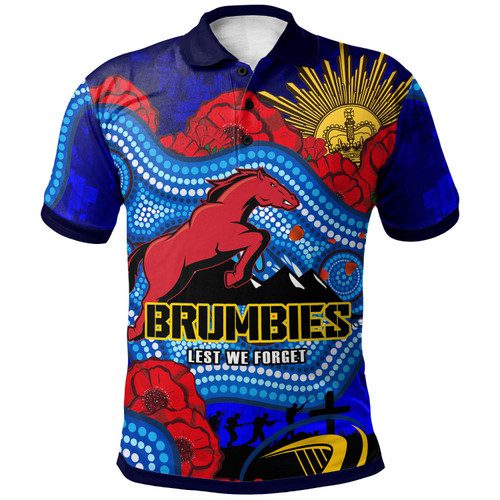 Brumbies Rugby Polo Shirt – Custom Anzac Day Brumbies Aboriginal Inspired Pattern with Horse and Poppy Flower