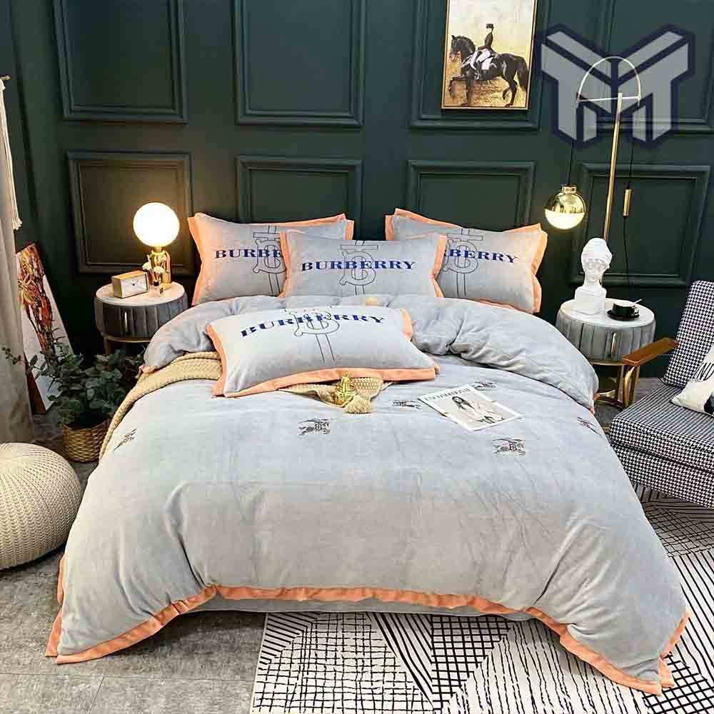 Burberry Bedding Sets, Burberry Grey Fashion New Bedding Set Quilt Sets Duvet Cover Luxury Brand Information: