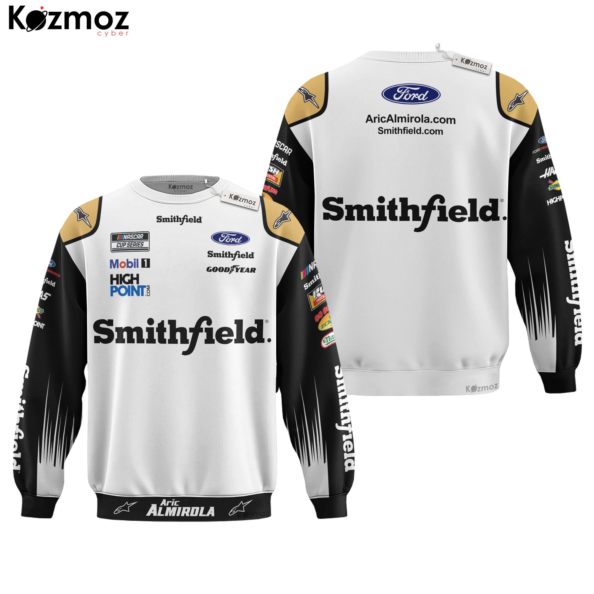 Shop the official Aric Almirola Men's Team Uniform T-Shirt from the Stewart-Haas Racing Collection. High-quality sublimated design with Smithfield graphics. Fast shipping!