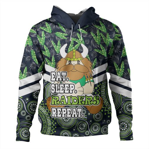 Canberra Raiders Hoodie – Tropical Patterns And Dot Painting Eat Sleep Rugby Repeat