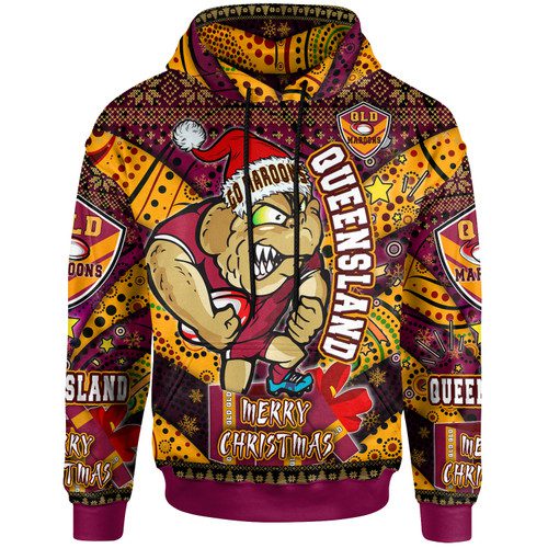 Cane Toads Christmas Hoodie – Custom QLD Go Maroons Cane Toads Aboriginal Inspired With Snowflake Hoodie