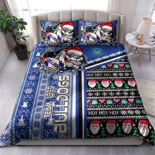 Canterbury-Bankstown Bulldogs Christmas Bedding Set – Custom Scratch Canterbury-Bankstown Christmas With Snowflakes Ho Ho Ho Bedding Set