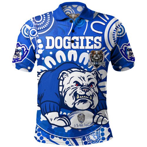 Canterbury-Bankstown Bulldogs Custom Polo Shirt – Indigenous Doggies Blue and Whites Aboriginal Inspired Polo Shirt