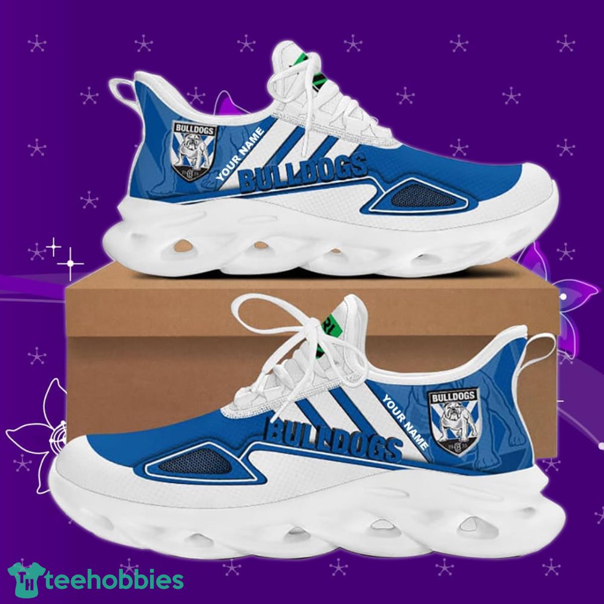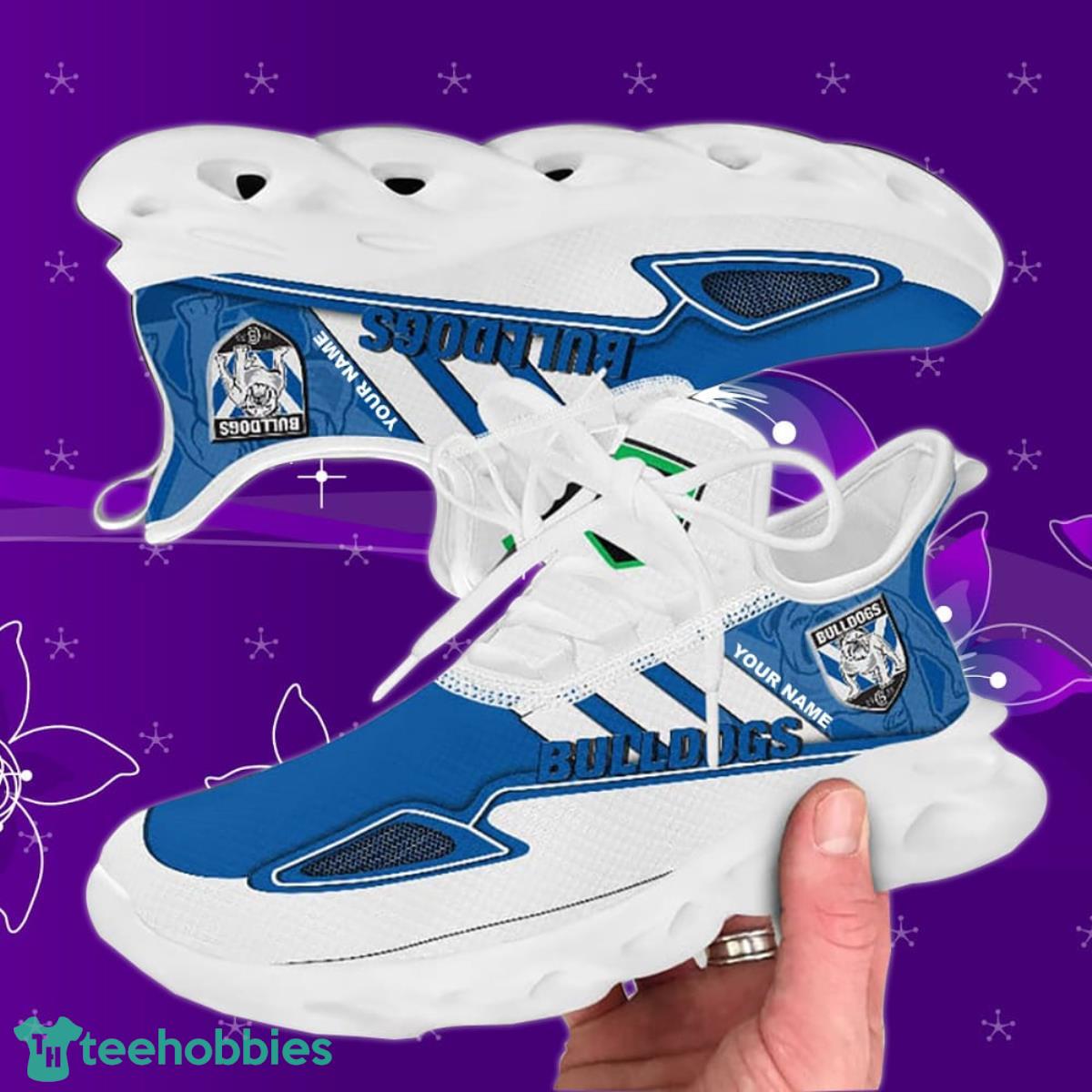 This Canterbury-Bankstown Bulldogs NRL Max Soul Custom Name Special Gift Men And Women For Fans is a breathable, lightweight, and comfortable casual outdoor shoe that has a unique design. It is made of a mesh fabric which makes it sweat absorbent and breathable, while the rubber bottom ensures traction, comfort, and durability. It is available in two colors: black or white sole. There are two styles of shoelace holes so you can choose your preference.