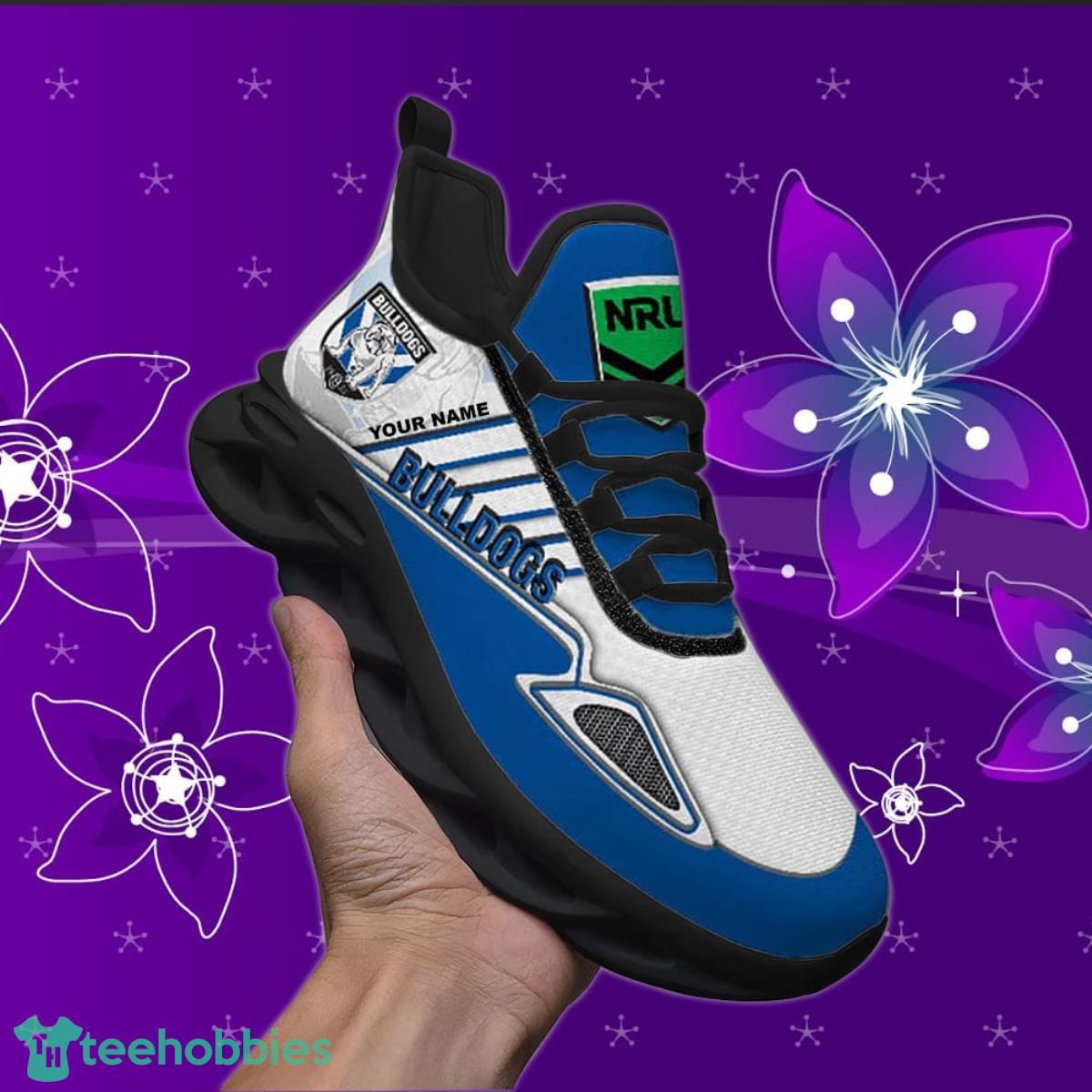 This Canterbury-Bankstown Bulldogs NRL Max Soul Custom Name Style Gift Men And Women For Fans is a breathable, lightweight, and comfortable casual outdoor shoe that has a unique design. It is made of a mesh fabric which makes it sweat absorbent and breathable, while the rubber bottom ensures traction, comfort, and durability. It is available in two colors: black or white sole. There are two styles of shoelace holes so you can choose your preference.