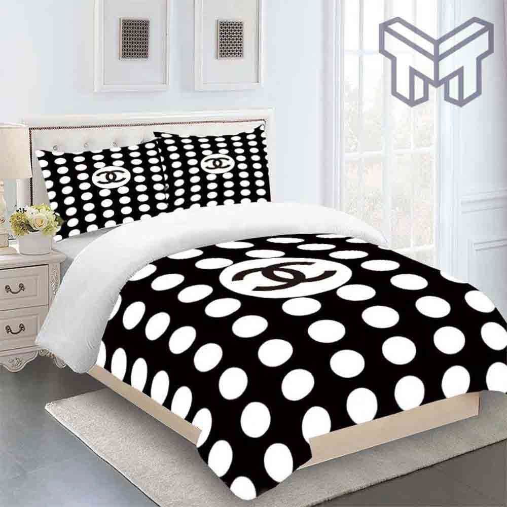 Chanel Bedding Sets, Chanel Black Circule Luxury Brand Premium Bedding Set Duvet Cover Home Decor Information: