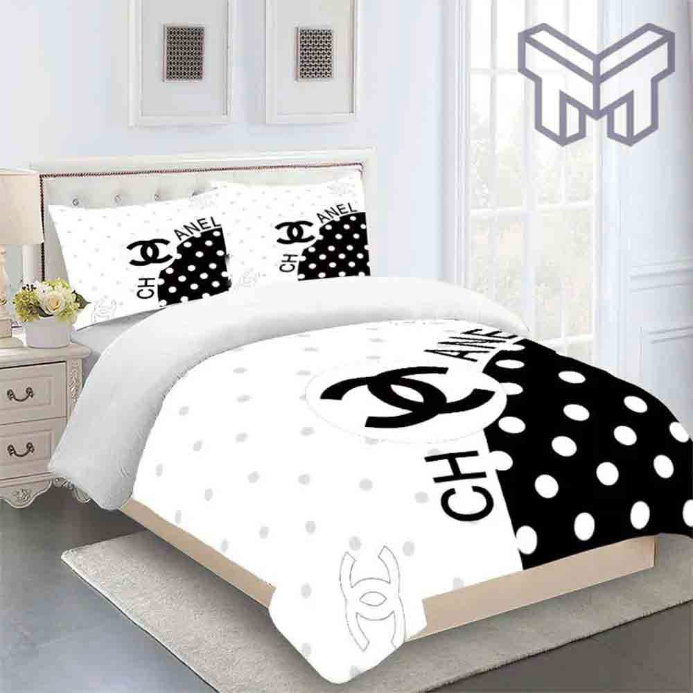 Chanel Bedding Sets, Chanel Black White Luxury Brand Bedding Set Duvet Cover Home Decor, The Best Quantity and Service: Transform your bedroom into a luxurious haven with the Chanel Black White Luxury Brand Bedding Set. This stunning duvet cover home decor boasts an elegant and timeless aesthetic that is sure to impress even the most...