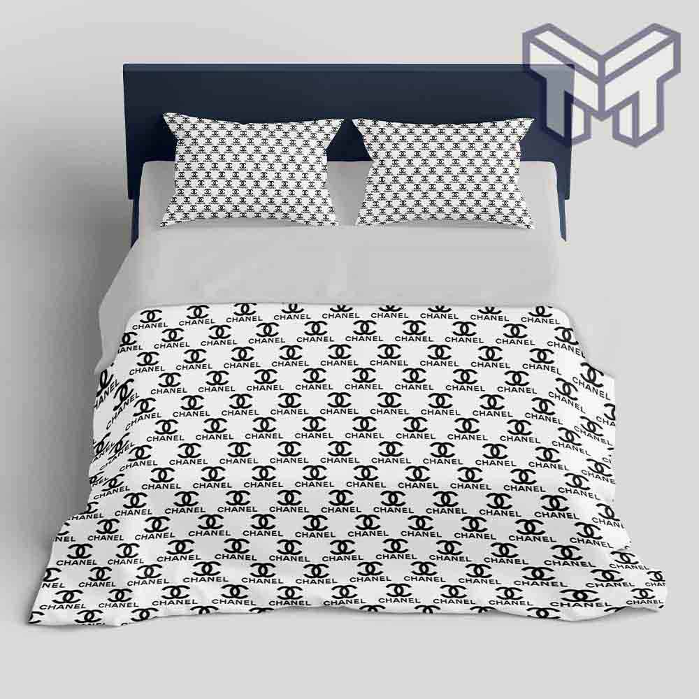 Chanel Bedding Sets, Chanel White Fashion Black Logo Luxury Brand Bedding Set Home Decor, The Best Quantity and Service: Add a touch of luxury to your bedroom with the Chanel Bedding Sets, featuring the iconic white fashion black logo design. Made from high-quality materials, this luxury brand bedding set is not only stylish but also...