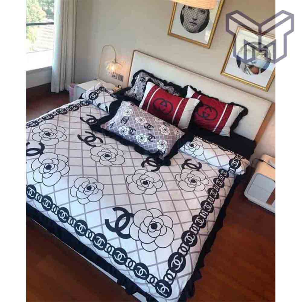 Chanel Bedding Sets, Chanel White Flowers Luxury Brand Bedding Set Home Decor, The Best Quantity and Service: Experience the ultimate in luxury bedding with our Chanel White Flowers Luxury Brand Bedding Set Home Decor. Crafted from premium materials, this exquisite bedding set features a beautiful white floral pattern that is sure to impress even the...