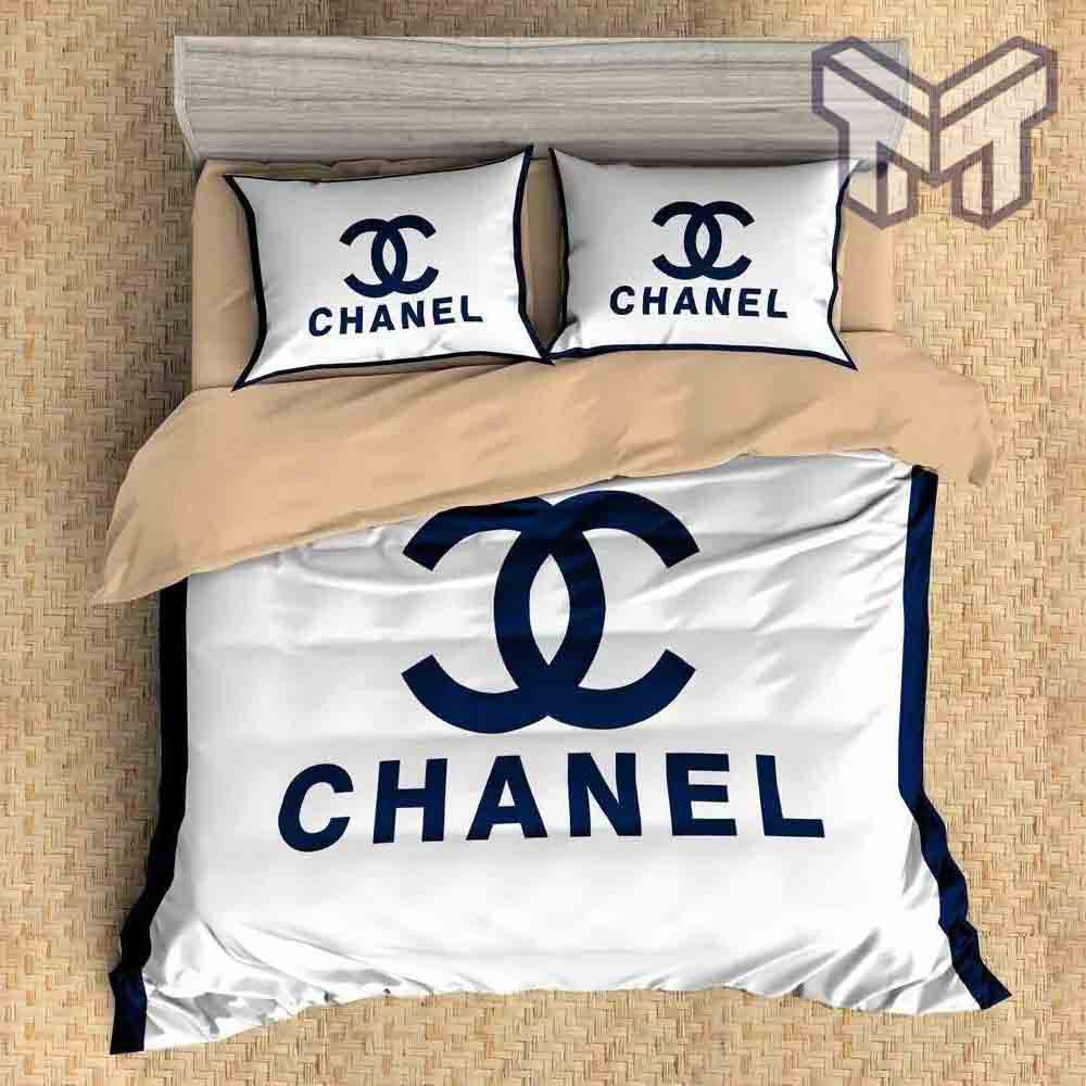 Chanel Bedding Sets, Chanel White In Blue Luxury Brand High-End Bedding Set Home Decor, The Best Quantity and Service: