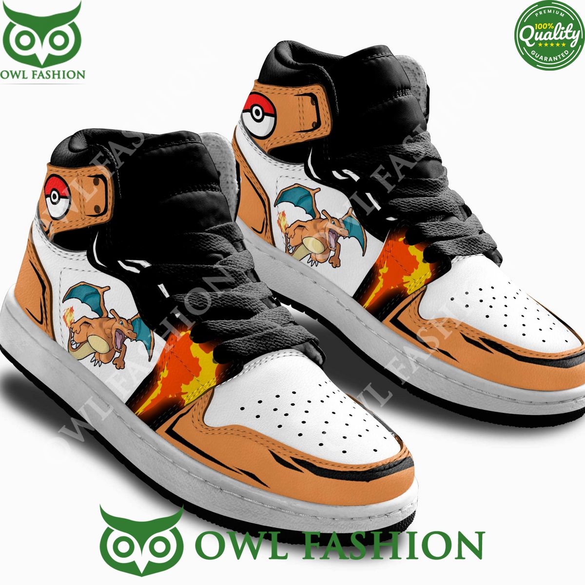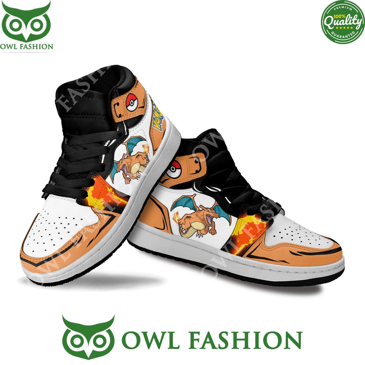 At the heart of these custom Air Jordan 1s is the delightful design featuring Charizard, one of the most recognizable and beloved Pok?mon characters. The playful and cute depiction of Charizard adds a touch of whimsy to the classic silhouette of the Air Jordan 1, creating a harmonious balance between streetwear and anime-inspired aesthetics. The vibrant colors and intricate detailing bring the character to life on the sneakers, making them a standout and eye-catching addition to any sneaker collection.