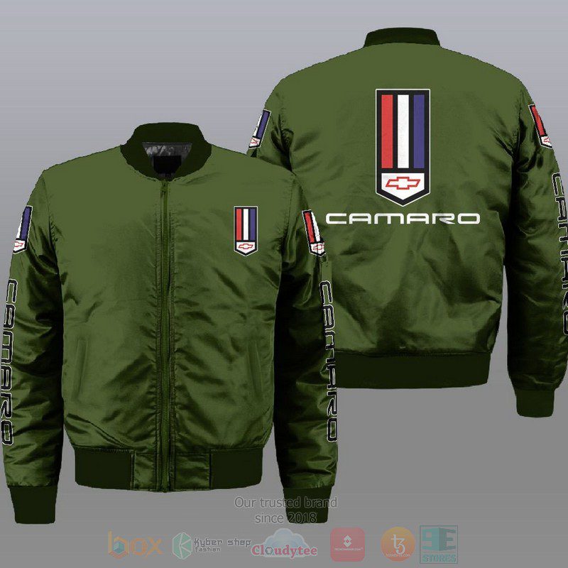 Chevrolet Camaro Simple Style Bomber Jacket Product Features This sweet bomber jacket features crisp Chevrolet Camaro graphics that put your fandom proudly on display, so no one will be able to question your allegiance. Always on-trend: Matches seamlessly with anything underneath ? definitely a wardrobe staple. Comfy & warm: With ample lining inside, this jacket...