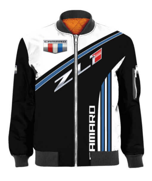 Chevrolet Camaro ZL1 Bomber Jacket Product Features This sweet bomber jacket features crisp Chevrolet Camaro graphics that put your fandom proudly on display, so no one will be able to question your allegiance. Always on-trend: Matches seamlessly with anything underneath ? definitely a wardrobe staple. Comfy & warm: With ample lining inside, this jacket will...
