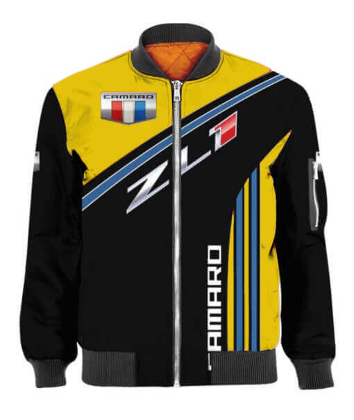 Chevrolet Camaro ZL1 Yellow Black Bomber Jacket Product Features This sweet bomber jacket features crisp Chevrolet Camaro graphics that put your fandom proudly on display, so no one will be able to question your allegiance. Always on-trend: Matches seamlessly with anything underneath ? definitely a wardrobe staple. Comfy & warm: With ample lining inside, this...