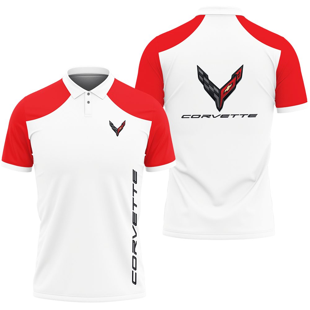 Chevrolet Corvette White Red Polo Shirt Product Features Versatile and fitting numerous styles, this Chevrolet Corvette polo shirt can deliver a simple yet mature look, or a fresh and sporty vibe, it?s up to you! Comfortable and made of 95% polyester + 5% spandex, this shirt absorbs extra moisture with ease – perfect for sport-a-holics....