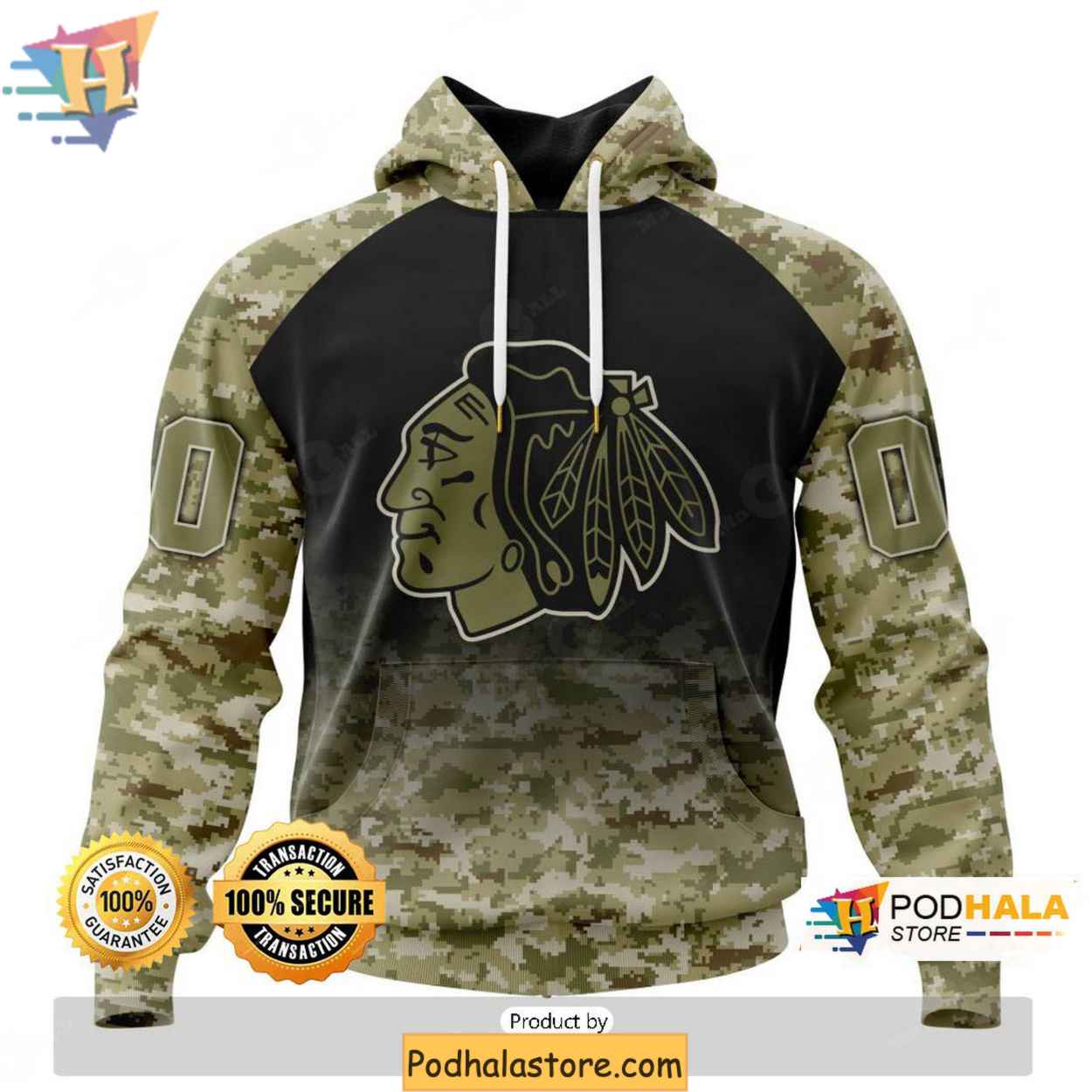 Chicago Blackhawks 3D Hoodie Camo Veterans Day Design for NHL Fans