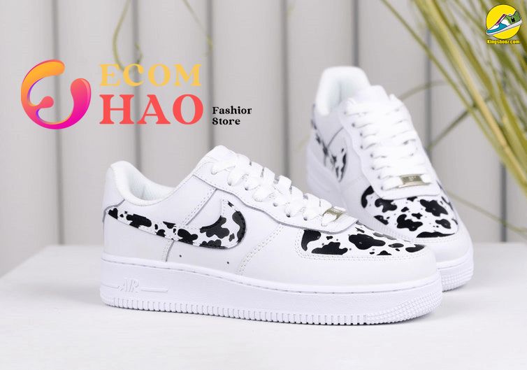 Cow Print Air Force 1 Custom These one-of-a-kind Cow Print Air Force 1 Custom shoes are an eye-catching conversation starter. Traditionally crafted and updated with a modern twist, they feature an adjustable strap closure for snug fit, and the cow-print design provides a unique twist to the classic silhouette. The unmistakable Air Force 1 silhouette...