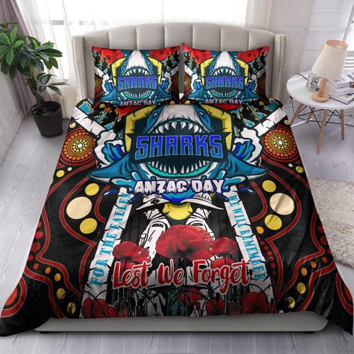 Cronulla-Sutherland Sharks Anzac Day Watercolour Custom Bedding Set – Remembrance Sharkies With Poppy Flower