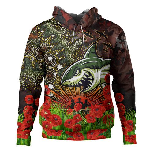 Cronulla-Sutherland Sharks Anzac Hoodie – Custom Anzac Remembrance Poppy and Indigenous Patterns Hoodie