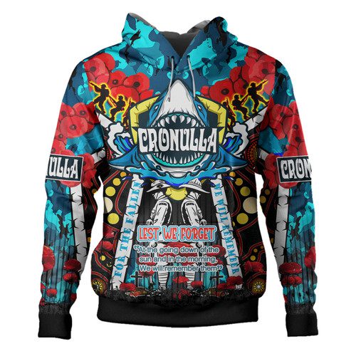 Cronulla-Sutherland Sharks Anzac Watercolour Custom Hoodie – Remembrance Sharkies Anzac Day With Poppy Flower Hoodie
