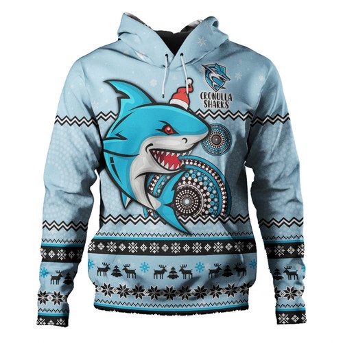 Cronulla-Sutherland Sharks Christmas Custom Hoodie – Ugly Xmas And Aboriginal Patterns For Die Hard Fan Hoodie