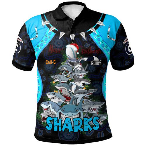 Cronulla-Sutherland Sharks Christmas Polo Shirt – Custom Cronulla-Sutherland Sharks Aboriginal Inspired Xmas Team 15 Players Polo Shirt