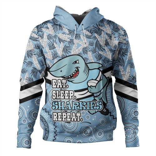 Cronulla-Sutherland Sharks Hoodie – Tropical Patterns And Dot Painting Eat Sleep Rugby Repeat