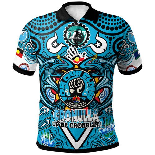 Cronulla-Sutherland Sharks Naidoc Polo Shirt – Custom Up Up Sharkies Naidoc Week For Our Elders Tribal Polo Shirt