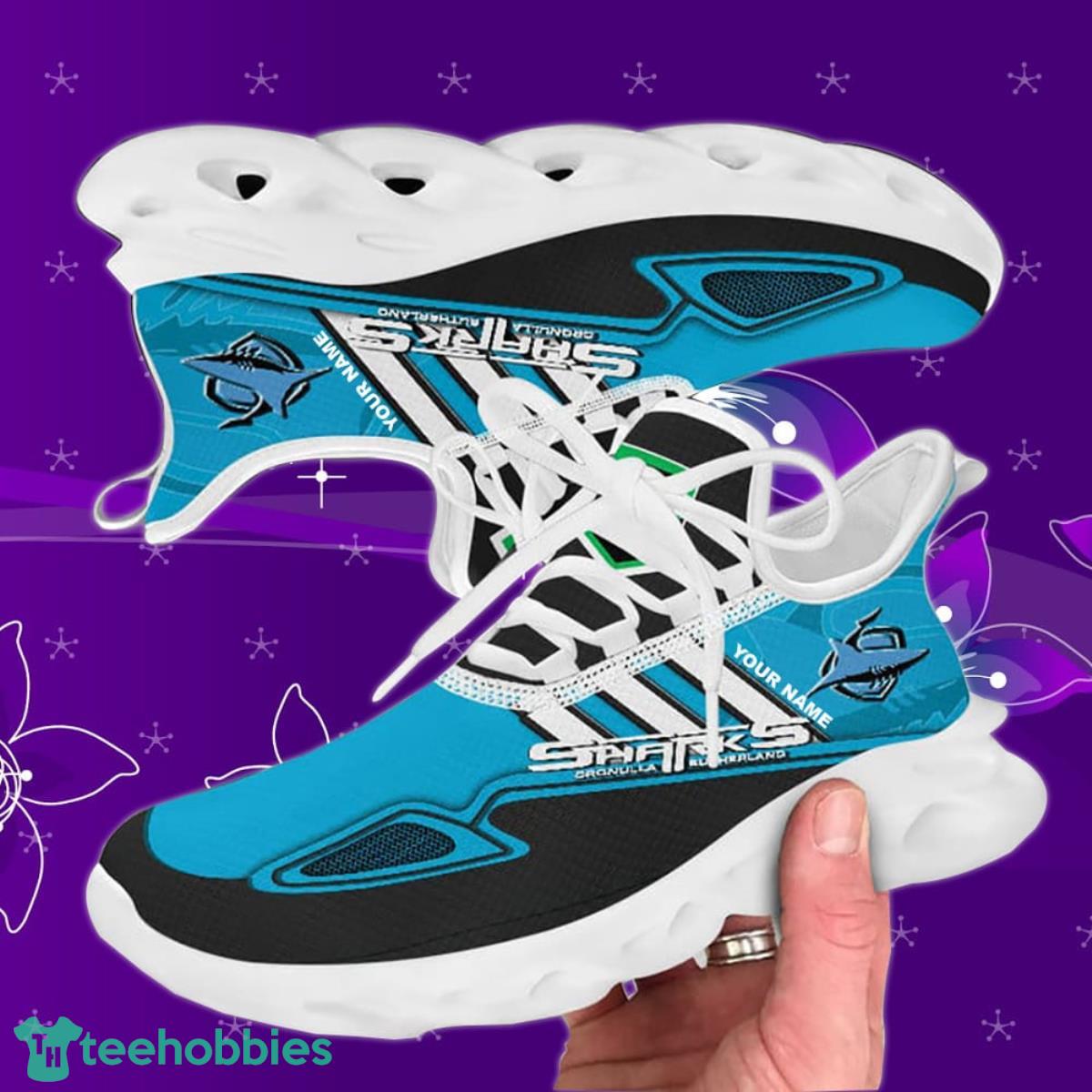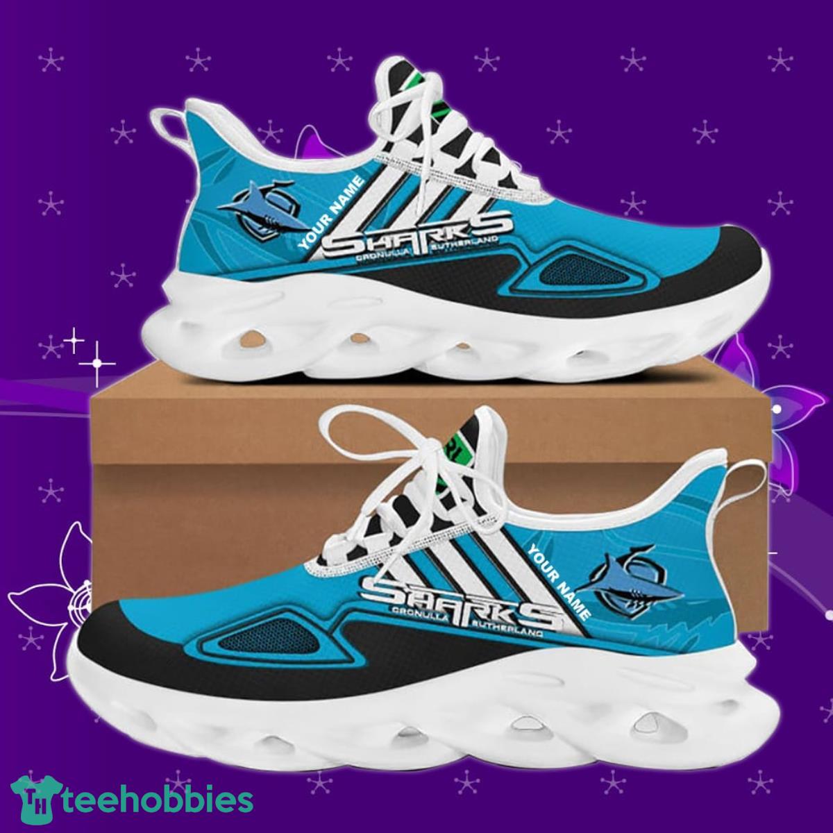 This Cronulla-Sutherland Sharks NRL Max Soul Custom Name Special Gift Men And Women For Fans is a breathable, lightweight, and comfortable casual outdoor shoe that has a unique design. It is made of a mesh fabric which makes it sweat absorbent and breathable, while the rubber bottom ensures traction, comfort, and durability. It is available in two colors: black or white sole. There are two styles of shoelace holes so you can choose your preference.