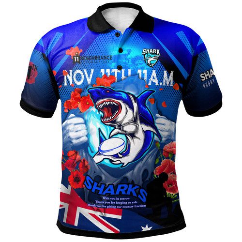 Cronulla-Sutherland Sharks Polo Shirt – Custom Cronulla-Sutherland Sharks Remembrance Day Lest We Forget Poppies Polo Shirt