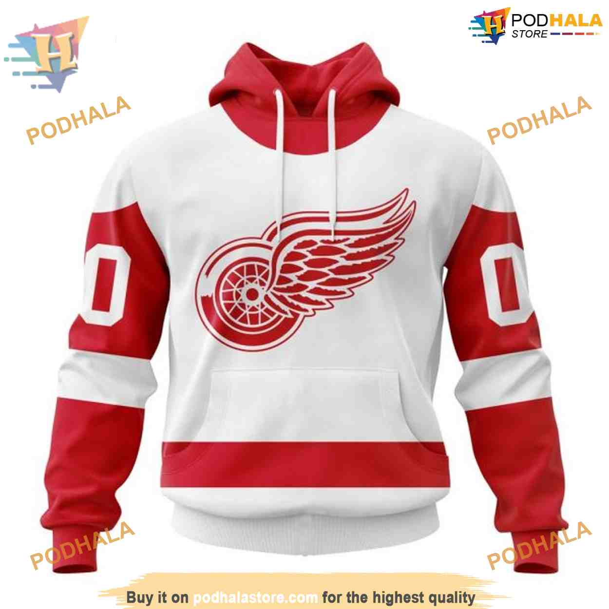 Custom 2023 Away NHL Detroit Red Wings Hoodie 3D